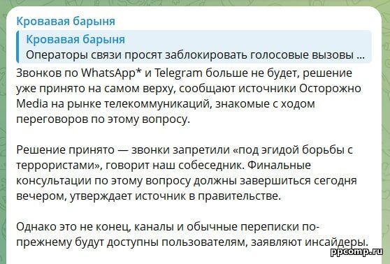 ⚡️ Звонки в Telegram и WhatsApp* — всё: РКН официально сообщил о блокировке звонков через мессенджеры