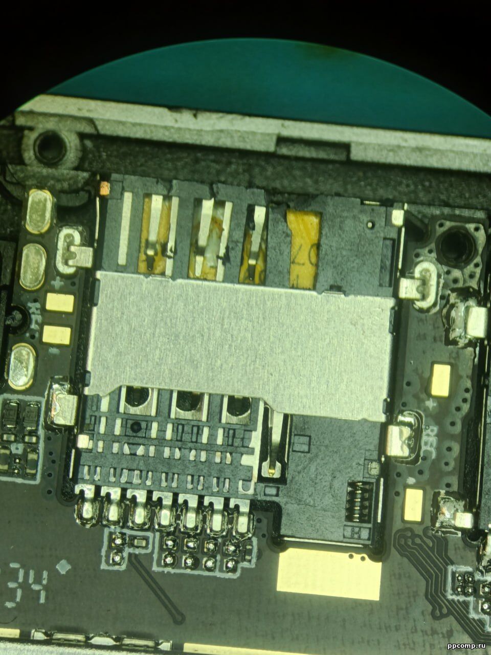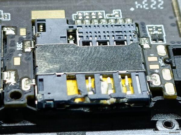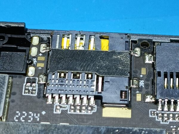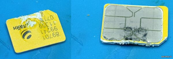 Я тоже приехал, посмотрел и не смог сделать на месте, пришлось забирать, и только под микроскопом я увидел, что там неправильно установлена SIM-карта, перпендикулярно